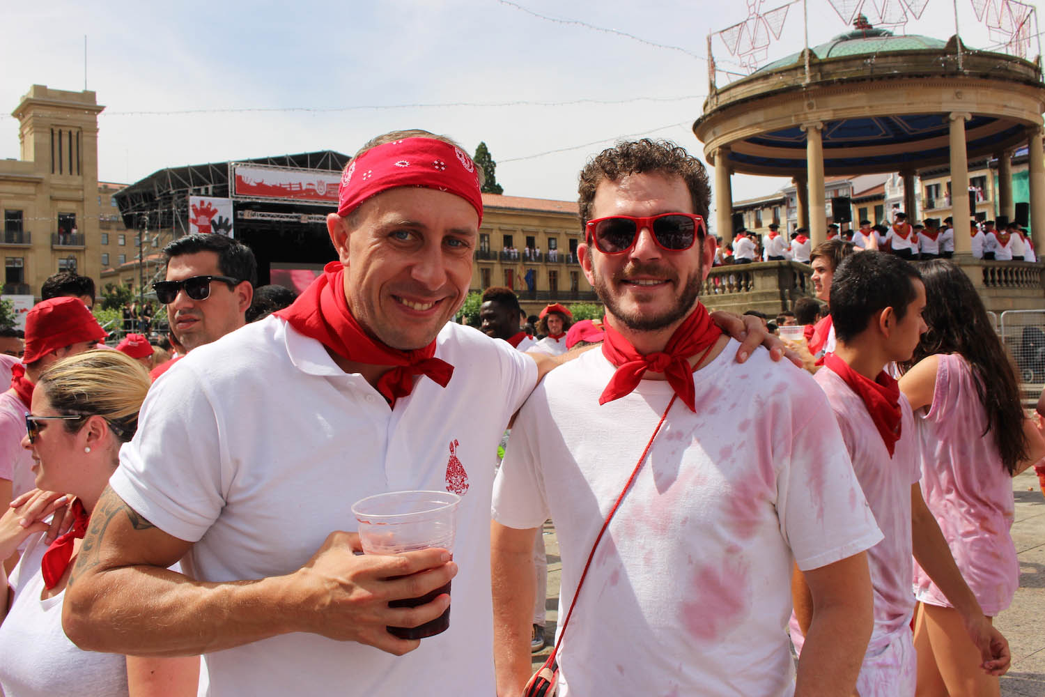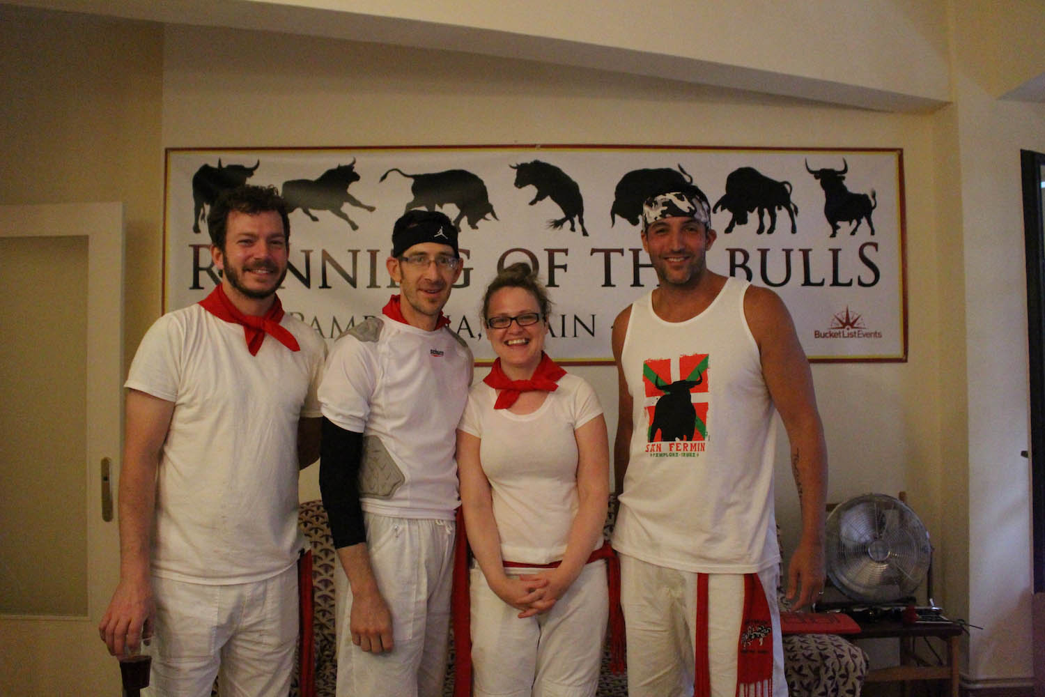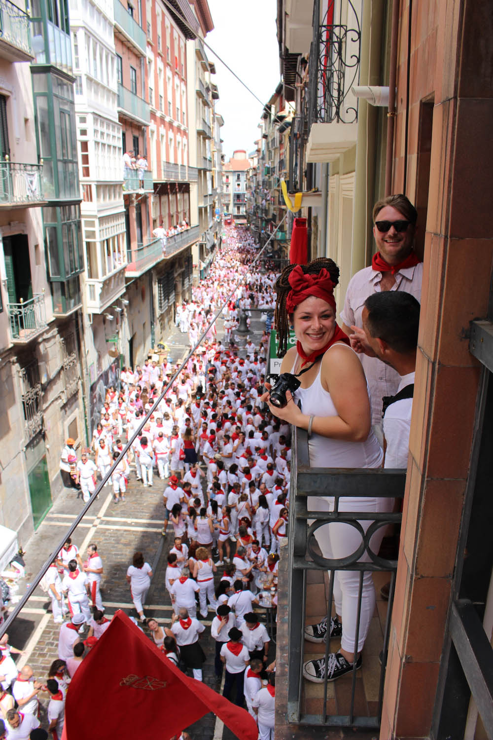 There is a standard dress code for the festival, and we provide the basics for the experience. This includes a white shirt, one red bandana (Panuelo), and the red sash that is worn around the waist.